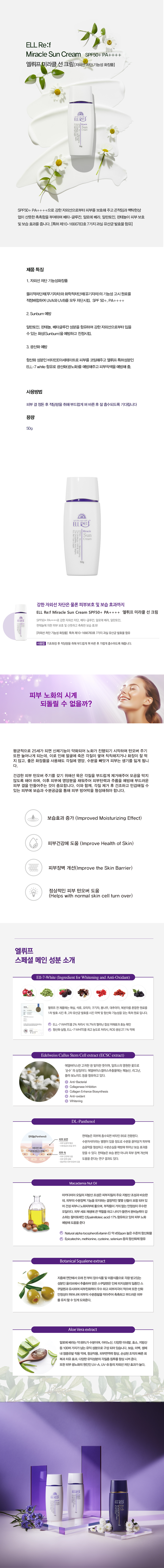 ELL Re:f Miracle Sun Cream SPF50+ PA++++ 상품명 ELL Re:f Miracle Sun Cream SPF50+ PA++++ 소비자가 58,000 원 수량 선택 구매하기 장바구니